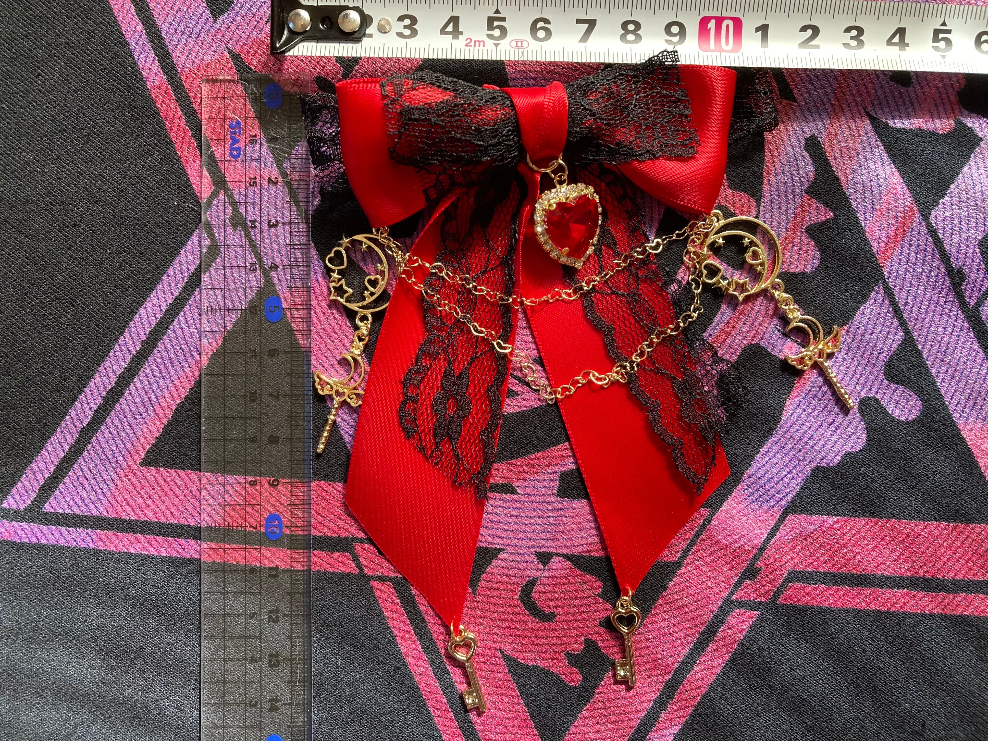 魔法のスカーレットリボン 2個セット 赤 レッド ハンドメイド 地雷系 メンヘラ 量産型 ハート 鍵 カギ 個性的 レース 魔法 杖